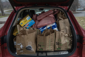 Las cajuelas de los carros están llenas de bolsas, y los asientos traseros igual de cargados. El contenido es variado, pero esencial para todos. Latas de frijoles, bolsas de pan, leche, fruta, toallas de papel, papas y productos de higiene importantes son acomodados por Holly Helterhoff, de 55 años, y otros dos voluntarios en dos autos que recorren su ruta de entregas por distintos distritos de Pontiac, donde la población inmigrante es grande y ha sido “golpeada” por arrestos migratorios. Antes de salir, se abrazan y se desean suerte en el camino.