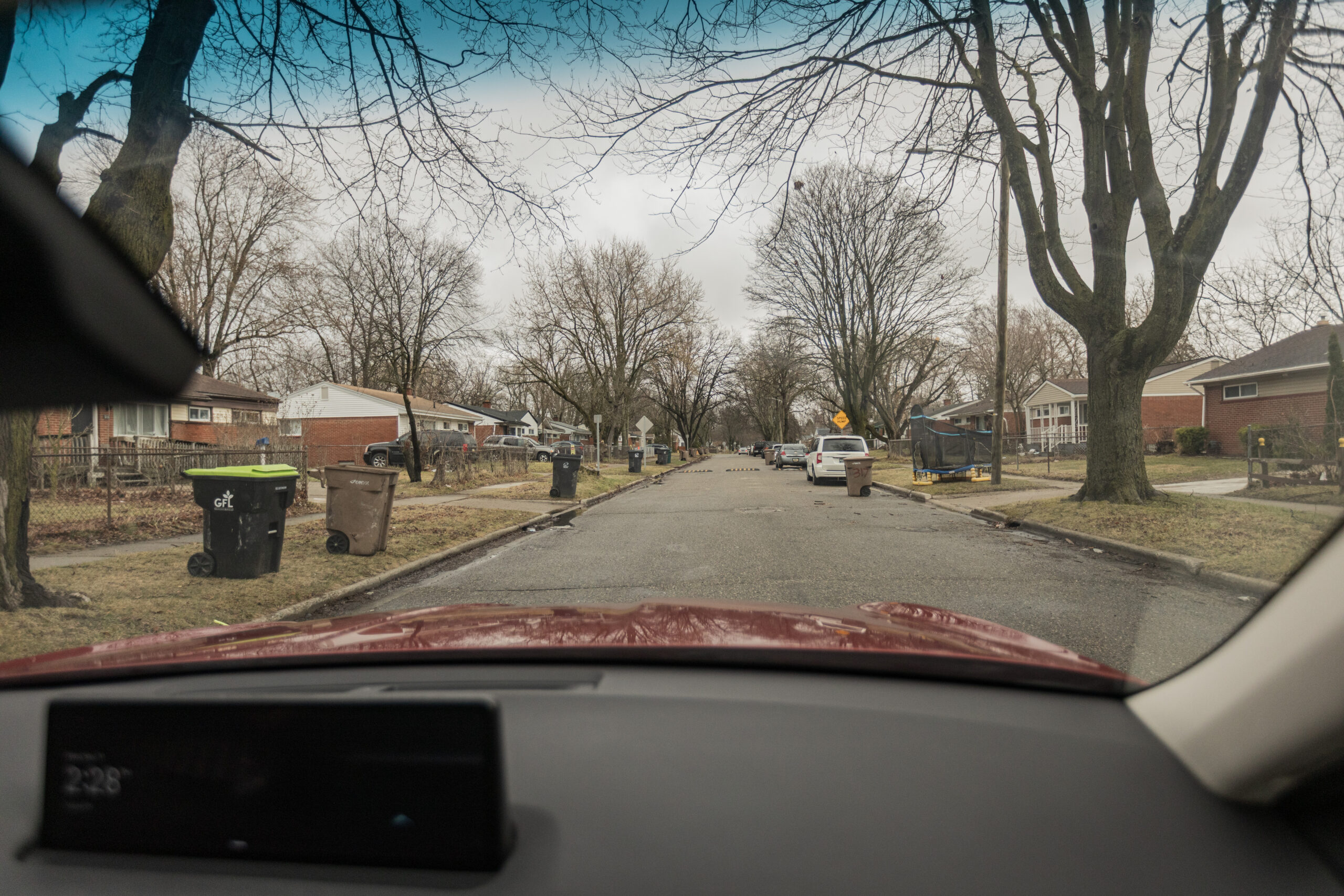 As she drives, she points out the spots where ICE arrests have been spotted most frequently—and where agents tend to patrol most often. These are working-class neighborhoods that, during the automotive boom, housed factory workers—and now house immigrant families; apartment complexes that house groups of immigrants—families, friends, and roommates alike; and trailer parks where roads and small houses are close to each other.