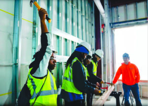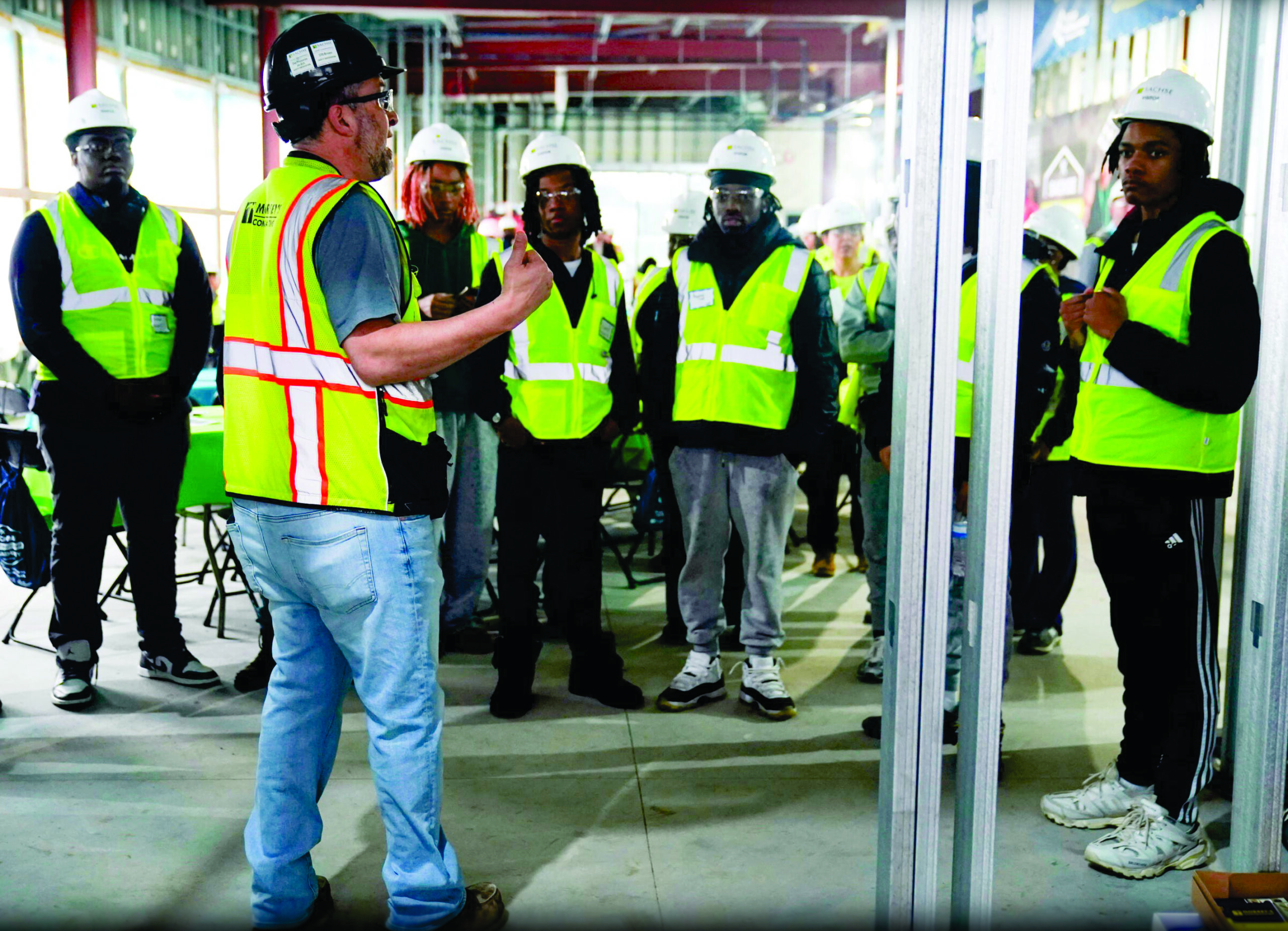 Un grupo de 100 estudiantes de secundaria de Detroit ayudó a instalar vidrio, colocar ladrillos y doblar tuberías en la futura sede del American Indian Health and Family Services en el suroeste de Detroit, brindando a los estudiantes una mirada de primera mano a una variedad de trabajos en oficios especializados.