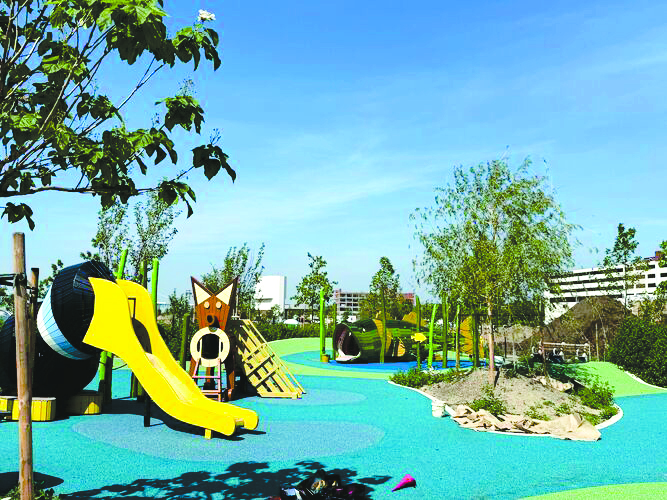 The park also includes the William Davidson Sport House with two full-sized outdoor basketball courts that can also be used for pickleball, volleyball, and even roller skating. An attraction for kids is the Delta Dental Play Garden that features giant slides like the 20-foot Bernstein Bear slide and a river otter slide, swings, nature-based play structures, play zones that inspire imagination, and even a tot lot for little ones.