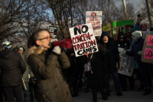 “I don’t want a single dollar of my tax money going to an agency that terrorizes neighborhoods, with masks and without warrants. I don’t want our hard-earned money going to detention centers that are known for their inhumane conditions and are known for having record deaths last year,” Wegela said.