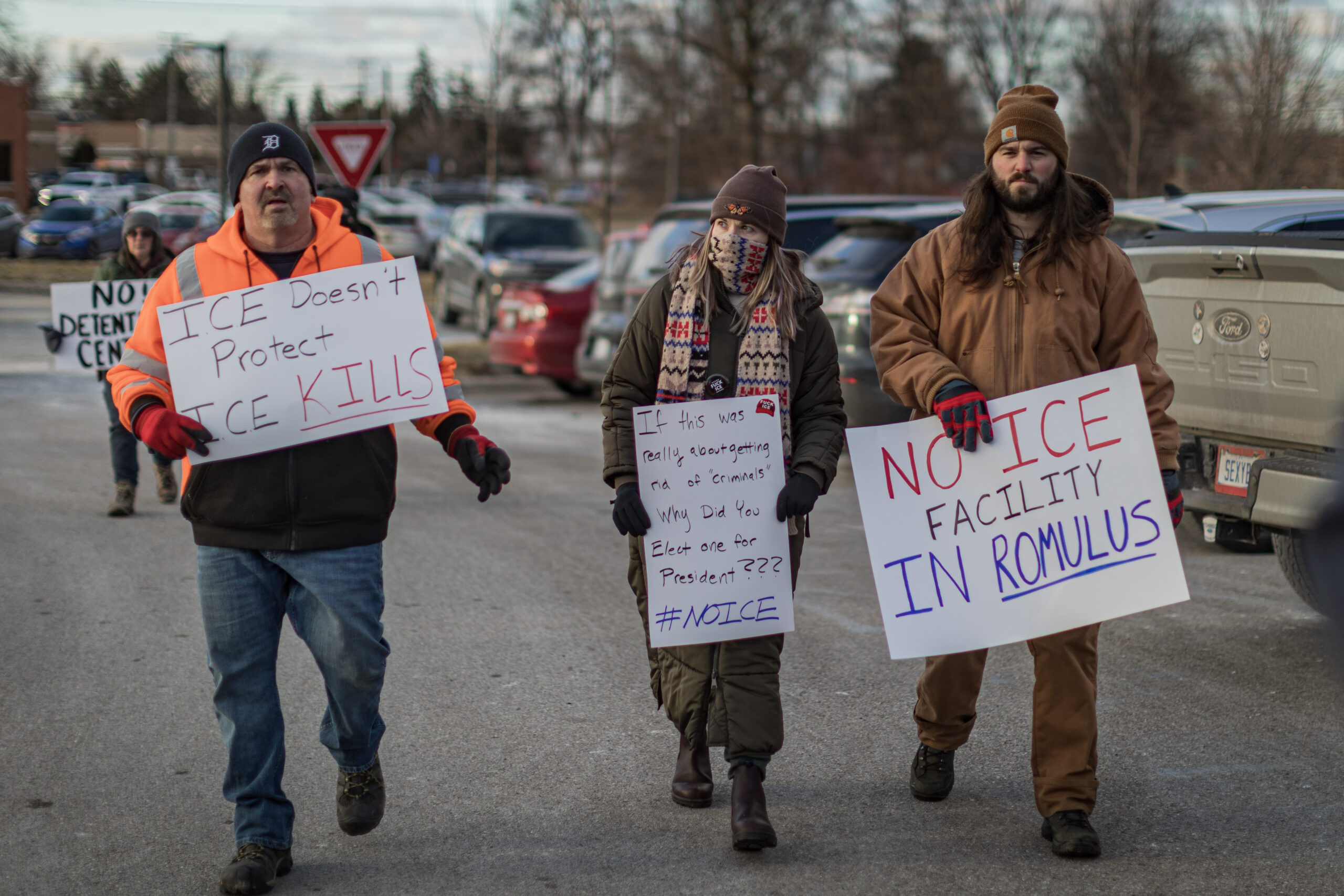 Anti-ICE and anti-Trump signs in one hand, megaphones in the other, some with faces covered and others bundled up to their ears; the typical tranquility of a Romulus City Council meeting was disrupted by hundreds of protesters who crowded the outside of the municipal building, chanting in unison: “ICE out of Romulus.”