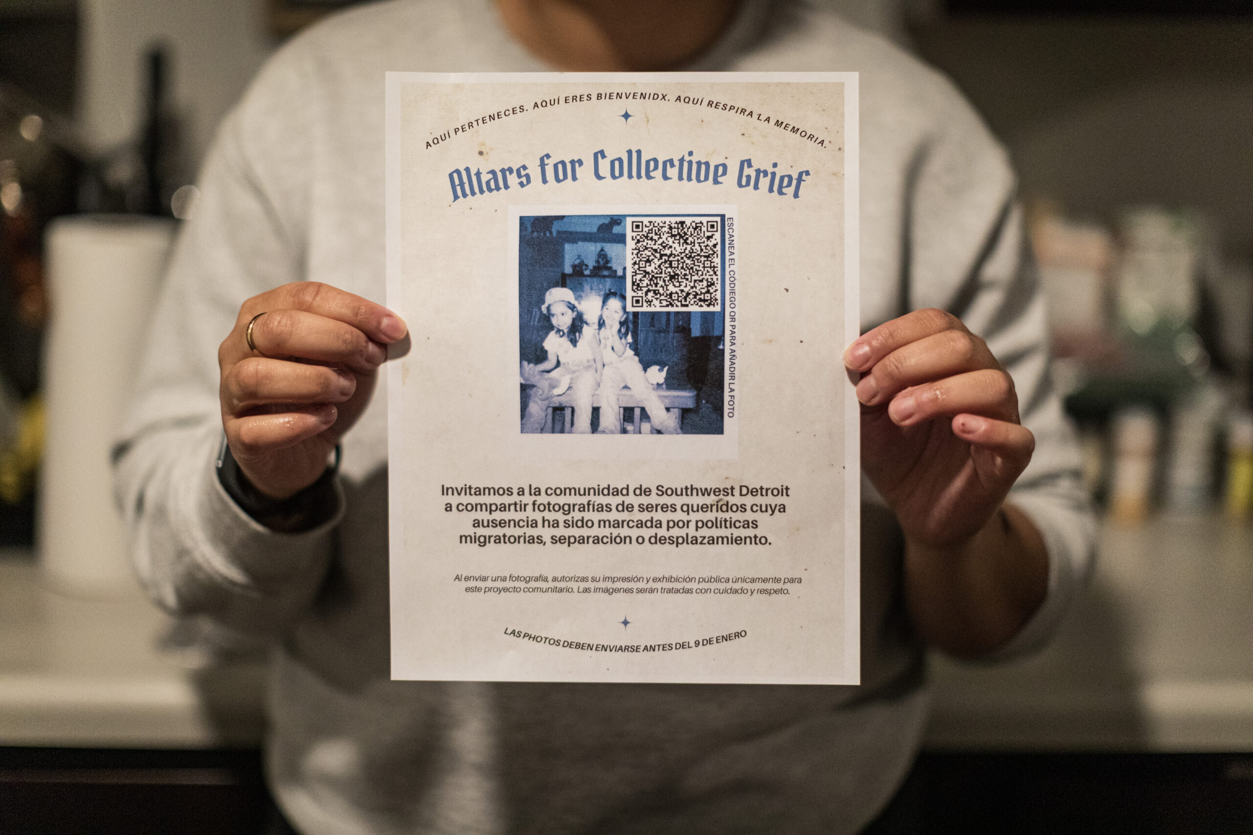 Fue una llamada telefónica de Theresa Beckley Amaya, trabajadora social en cuidados paliativos, a Julianna Sanromán Rojas, unos días antes de Navidad, lo que marcó el inicio del proyecto Altars for Collective Grief. El proyecto se define por altares con fotografías de integrantes de la comunidad que han sido deportados, los cuales se instalarán en negocios y parques de Southwest Detroit, con la esperanza de que se expanda por todo Michigan.