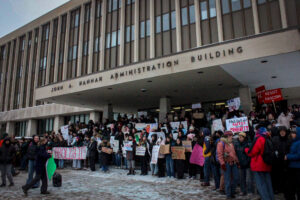 The demonstration at MSU was followed by a series of national protests and strikes organized on Friday against the Trump administration’s immigration policies and abuses committed by immigration agents across the country. Rallies in Grand Rapids, Ann Arbor, and Detroit drew hundreds one more time despite the frigid temperatures.