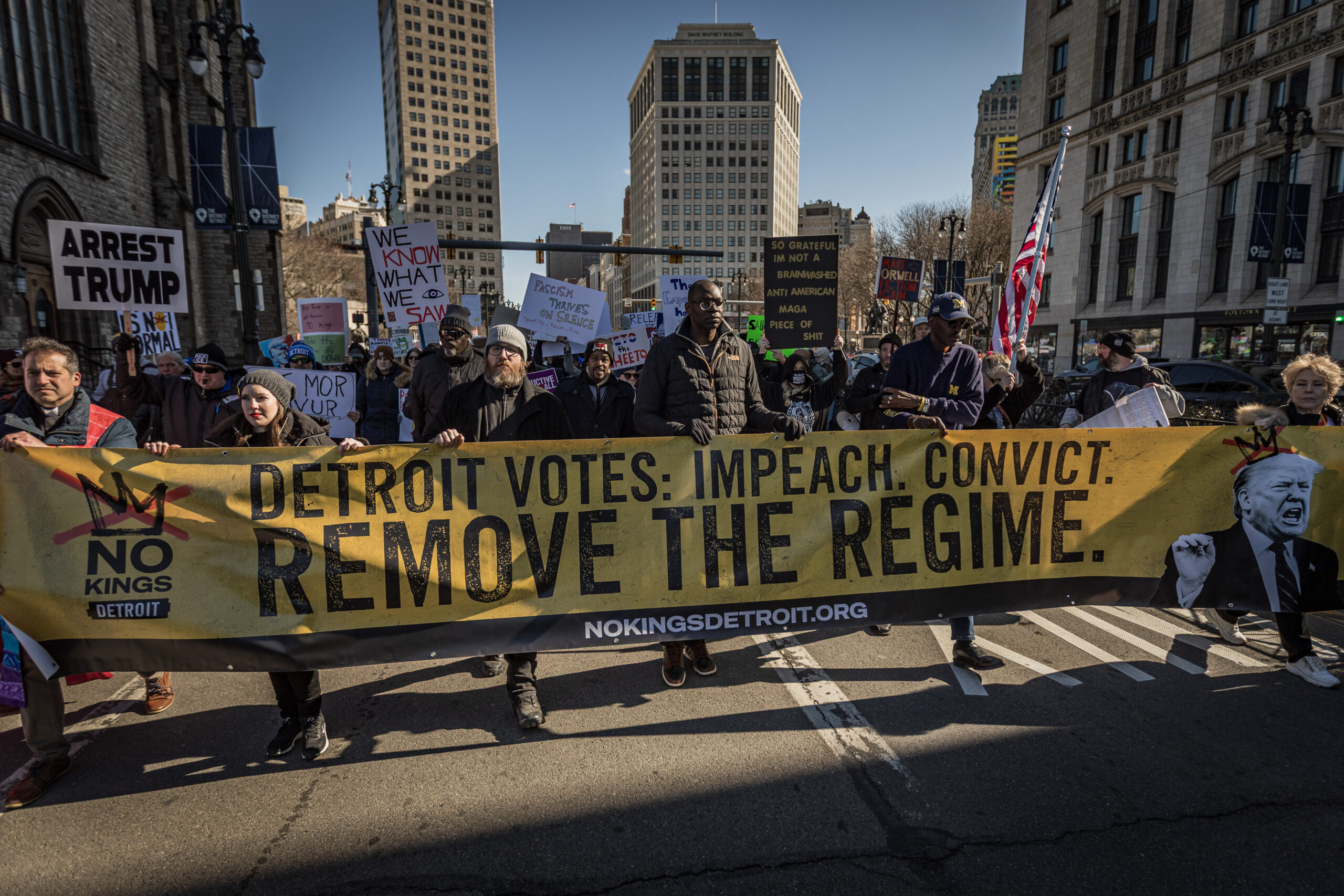 “No Kings Detroit” organizers had stated that this demonstration is a defense of the Constitution to “protect the Michiganders brutalized by ICE and stop the ongoing escalating war in Iran.”