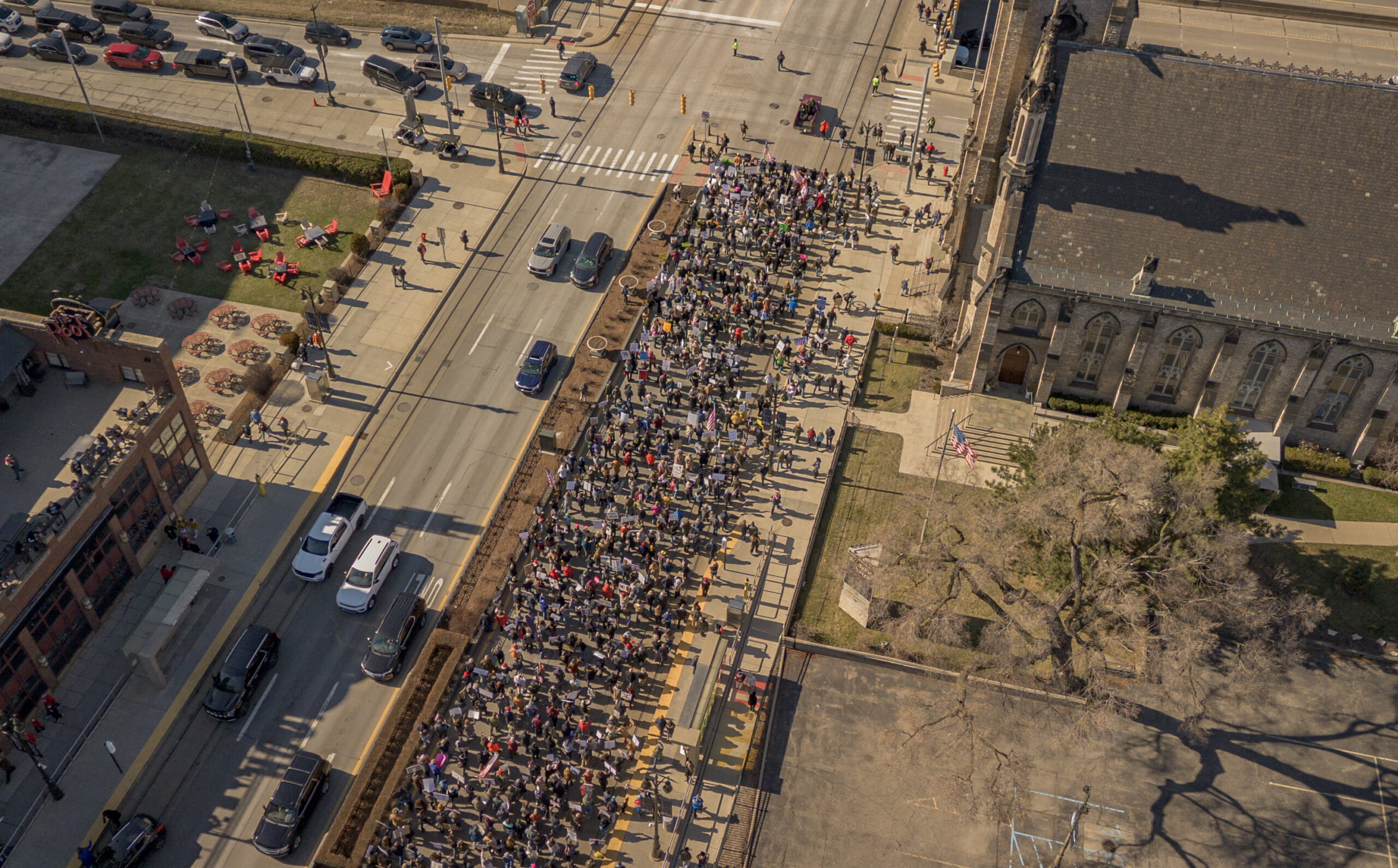 En Michigan, miles de personas, incluidos residentes, activistas, políticos y líderes religiosos, se unieron pacíficamente a más de 100 marchas en pueblos y ciudades como Grand Rapids, Lansing, Ann Arbor y tres manifestaciones en Detroit.