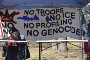 La congresista Rashida Tlaib habló sobre casos de abuso de ICE contra familias en Michigan y acusó al gobierno de llevar al país a una guerra ilegal. La legisladora demócrata, que aboga por la abolición total de ICE, venía desde Clark Park, donde ofreció un discurso similar ante unos 300 manifestantes. Allí criticó a sus colegas demócratas por buscar solo reformas a ICE y no su eliminación, y ofreció una autocrítica por los abusos de agentes federales contra la comunidad.